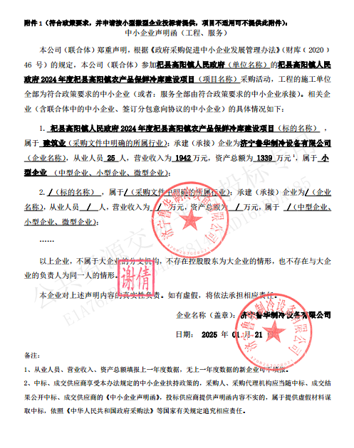 1 ******人民政府2024年度杞县高阳镇农产品保鲜冷库建设项目 招标工程量清单、施工图纸(含图纸变更)及采购文件所含全部内容施工 30日历天 / /