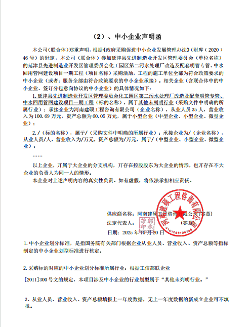 延津县先进制造业开发区管理委员会化工园区第二污水处理厂改造及配套明管专管、中水回用管网建设项目一期工程结果公告